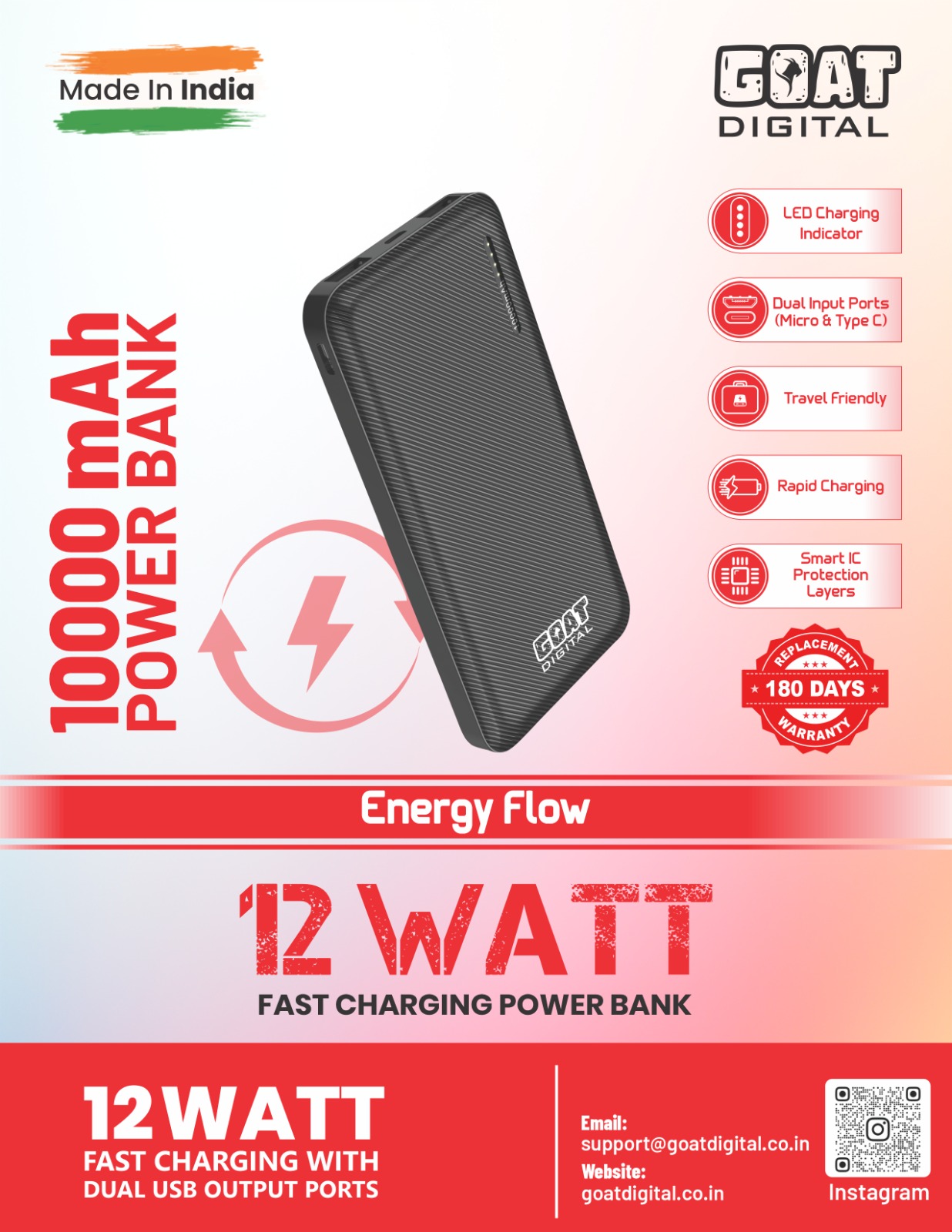 Energy Flow 12W 10000mAh Power Bank.