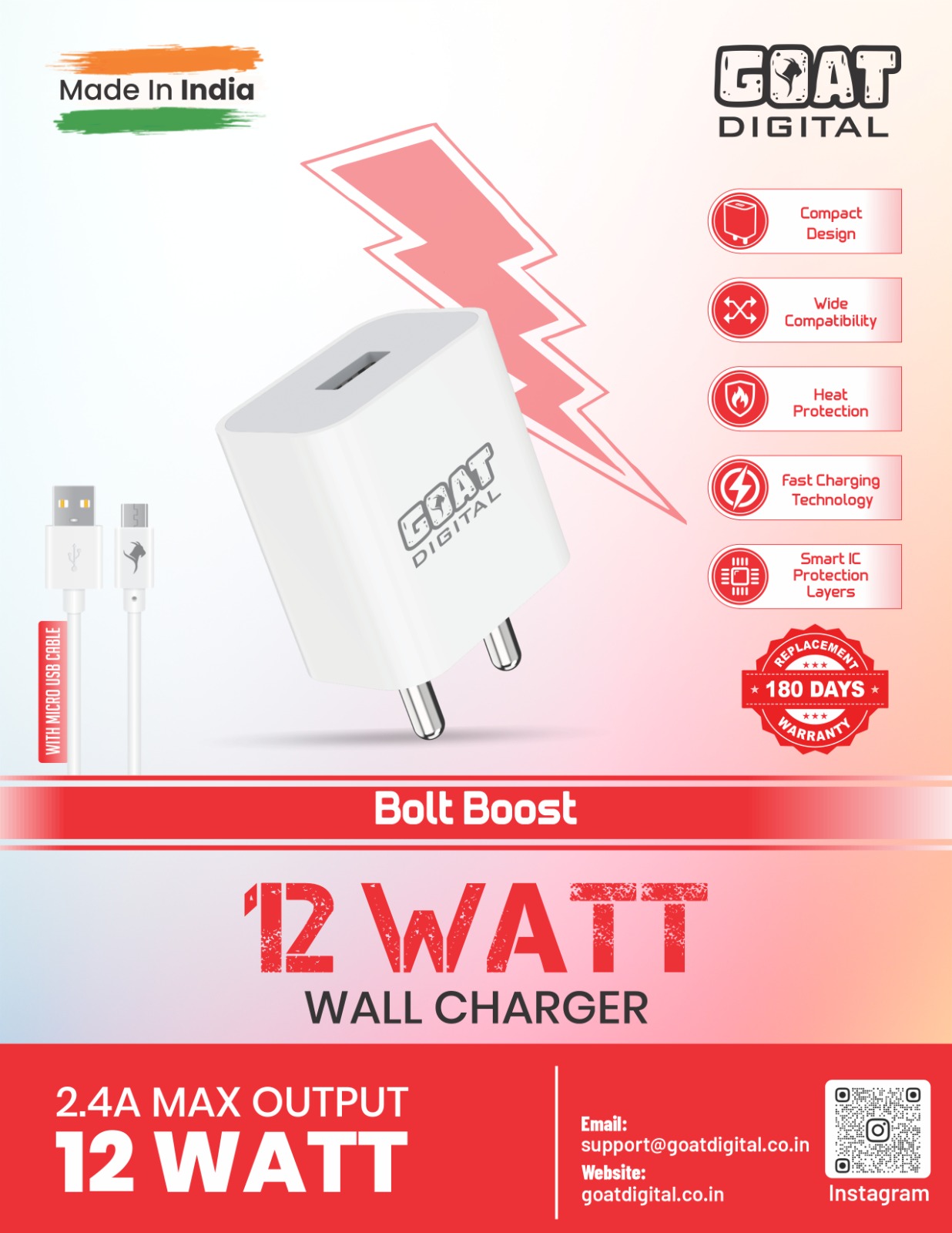 Bolt Boost 12W 2.4A Charger with Micro USB Cable