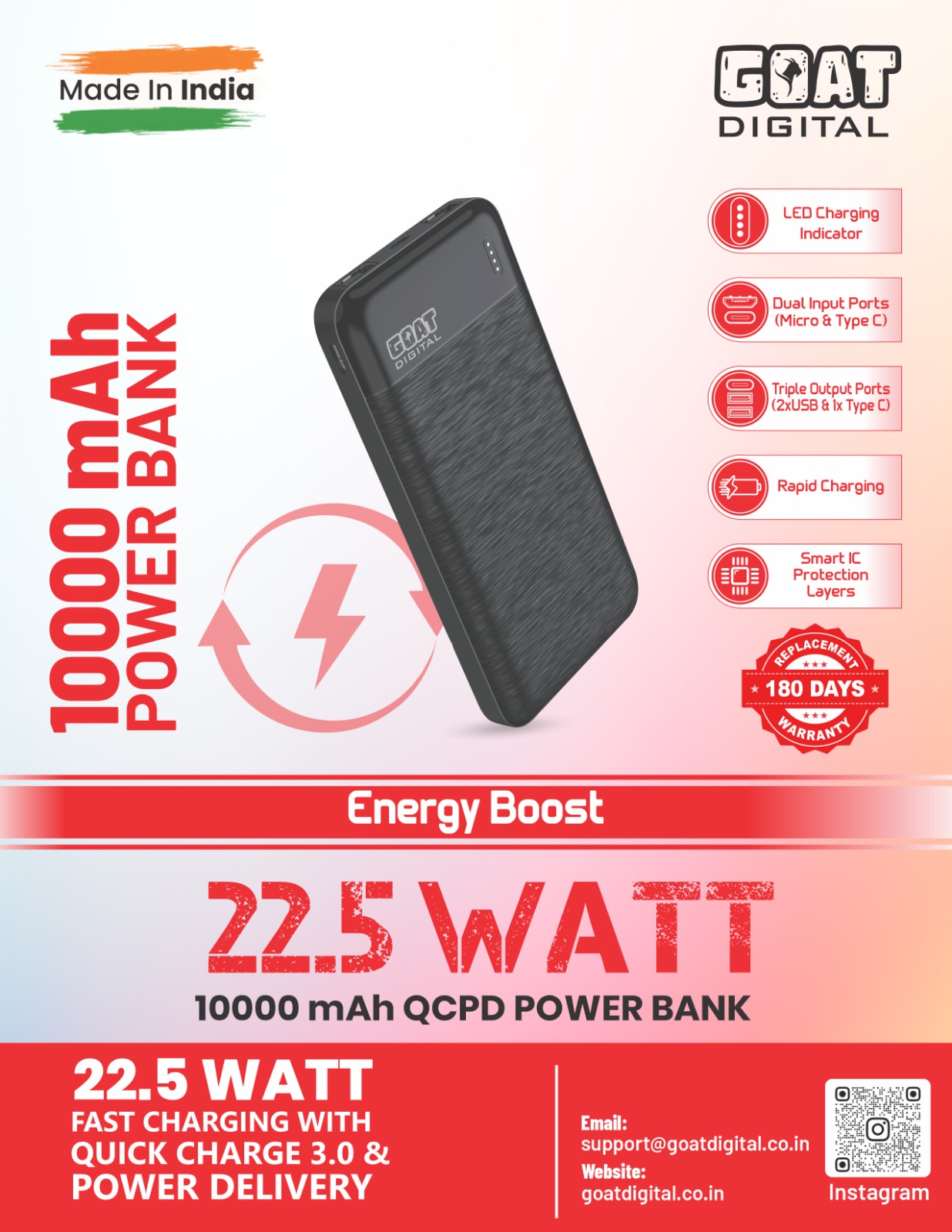Energy Boost 22.5W 10000mAh QCPD Power Bank.