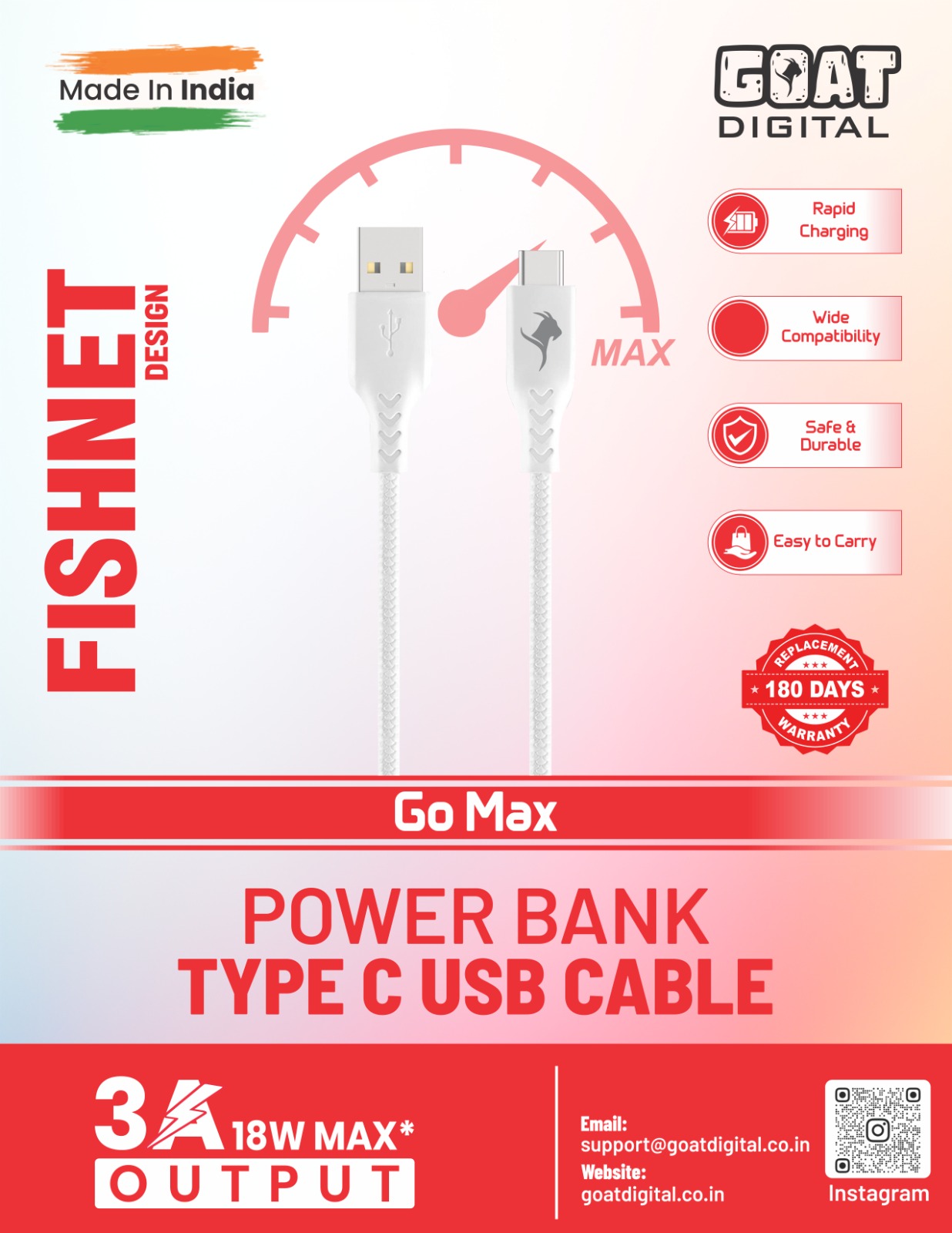 Go Max- 3A 18W Type-C Power Bank Cable.